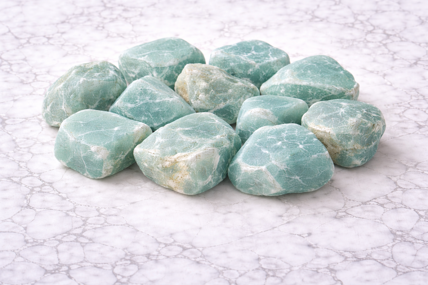 Turquoise Amazonite, originating from regions of Brazil, is a calming stone known for its tranquil blue-green hues. Often associated with balance and emotional clarity, it is believed to ease stress, encourage harmony, and support open expression.