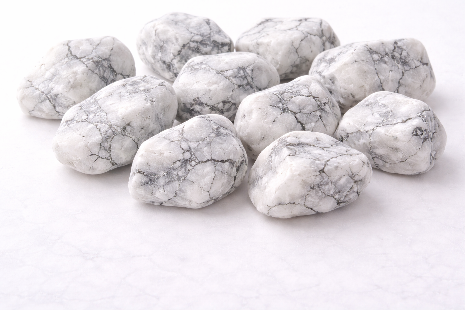 Marble Howlite, originating from Cape Breton, Nova Scotia, is a striking white stone that symbolizes wisdom and deep connection. Revered for its calming energy, it aids in enhancing mindfulness, fostering spiritual growth, and strengthening personal bonds.