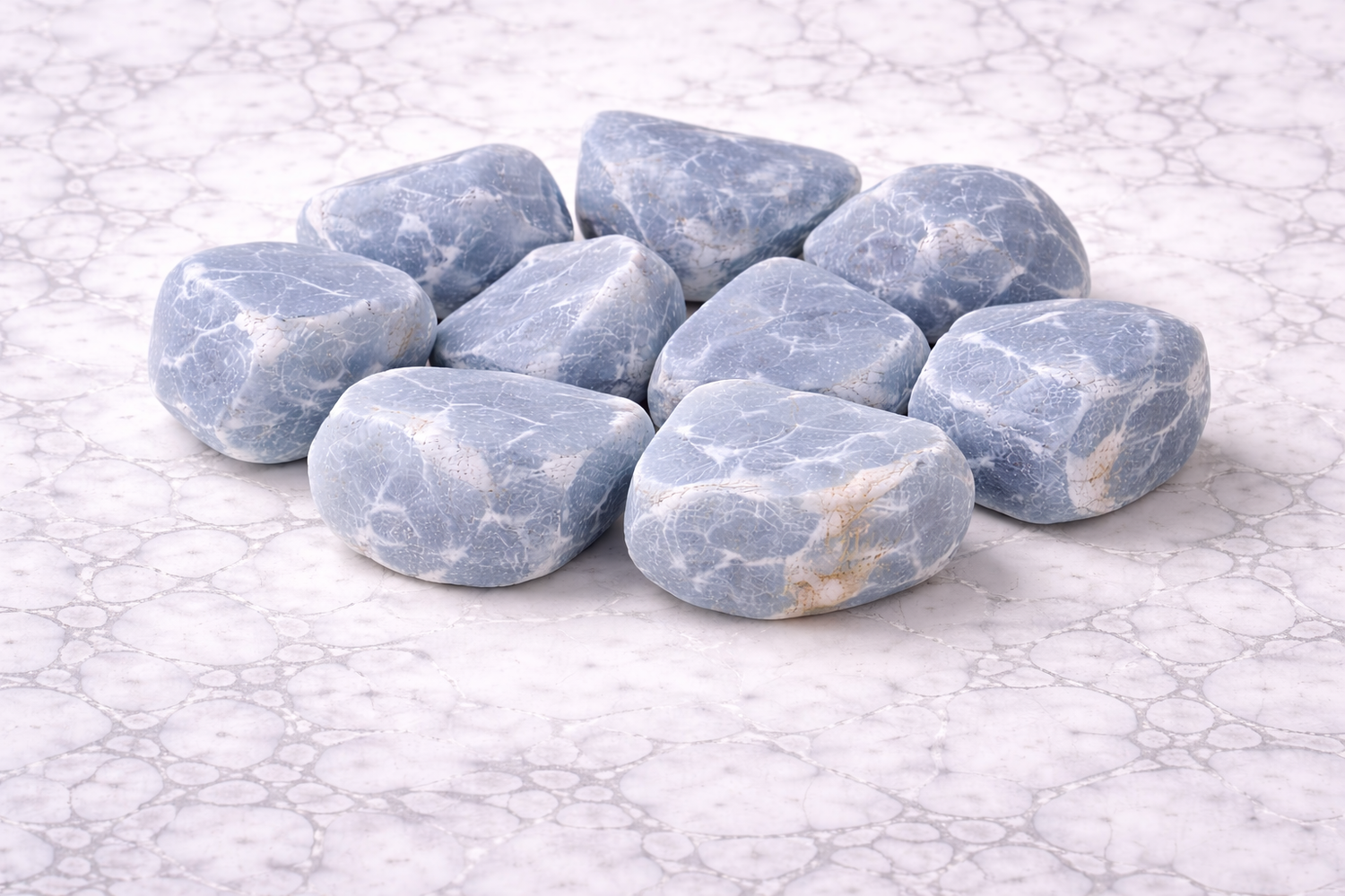 Blue Angelite, originating from Peru, is a serene stone known for its ability to reduce anxiety and calm anger. It is often used to promote inner peace, helping to create a sense of tranquility and emotional balance.